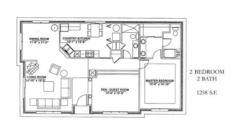 2 Bedroom, 2 Bath 1258 sqft