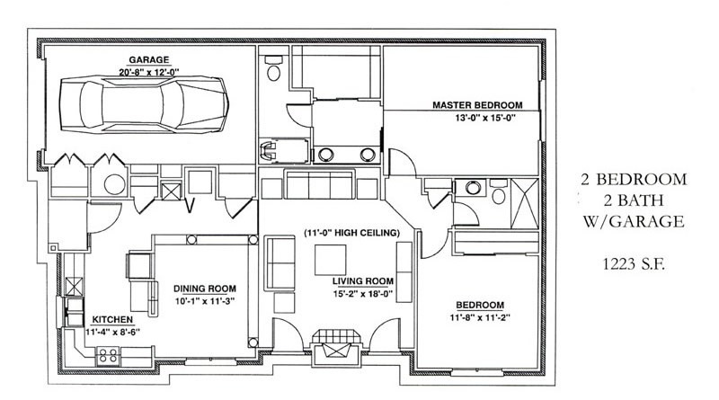 2 Bedroom, 2 Bath w/ Garage 1223 sqft